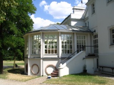 Remont elewacji budynku pałacowego. Odnowienie wnętrz – malowanie oraz oczyszczenie i konserwacja ceglanych sklepień piwnic.